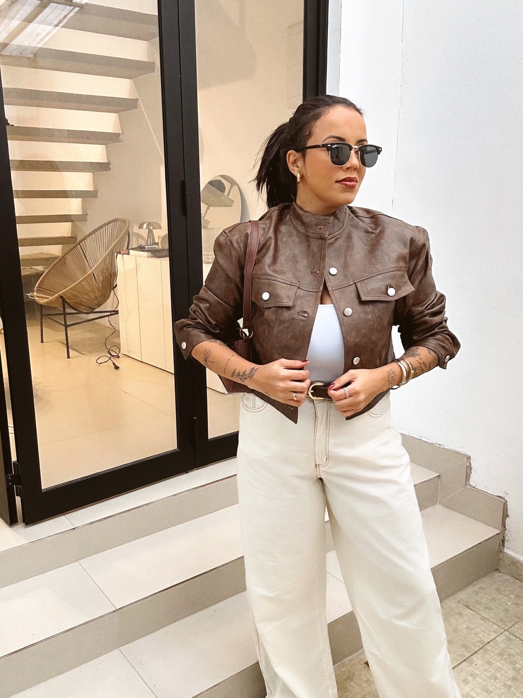 uma peça que traz modernidade e elegância ao seu guarda-roupa! Confeccionada em couro PU, ela possui um forro confortável e botões na parte frontal e nas mangas, garantindo um toque especial.